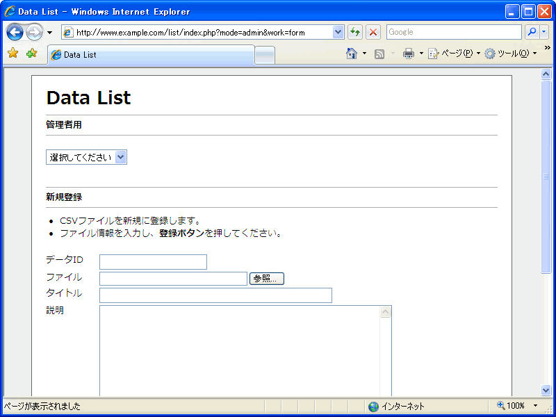 index.phpconfig.php.htaccessdata.logerror.logconfigs/logins/css/js/templates/templates_c/data/plugins/smarty/PHP List の設置方法。初めて設置に挑戦する方は設置の基本を参考にしてください。設置できない場合、トラブルシューティングも参考にしてください。