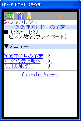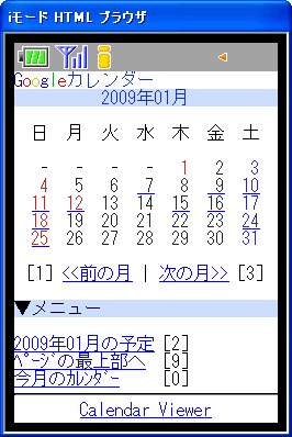 Google カレンダーに登録した予定を閲覧することができます。主な機能は以下のとおりです。